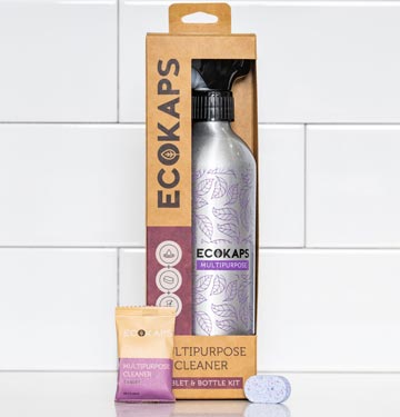ECOKAPS are concentrated cleaning formula products that dissolve when added to water. They are small enough to easily drop into almost any standard sized bottle, container or dispenser unit.